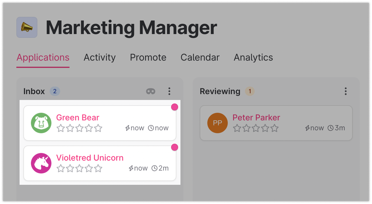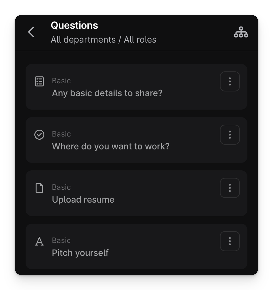 Du kannst entscheiden, wie viele Stufen du für jede Rolle möchtest und sie auf die Rolle selbst anpassen. Wenn du zum Beispiel für einen Designer einstellst, könntest du eine Portfolio-Überprüfung einfügen. Oder eine Fallstudien-Phase für eine Verkaufsrolle. Deinen Einstellungsprozess im Voraus anzupassen und einzurichten, wird den gesamten Prozess viel schneller machen.