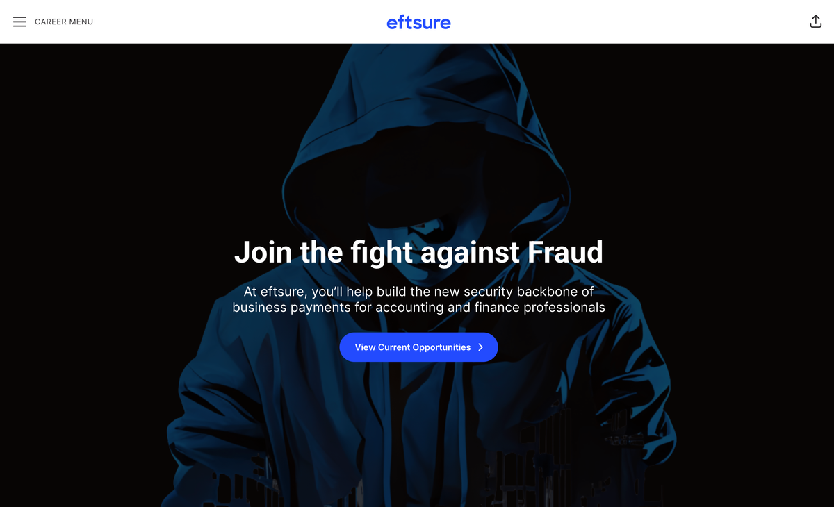 Eftsure ist eine schnell skalierbare SaaS-Plattform (Software-as-a-Service) zum Schutz vor Betrug, die die B2B-Zahlungen australischer Unternehmen durch Echtzeit-Überprüfung von Lieferanten und Echtzeit-Zahlungsschutz absichert. In einer Welt, in der Cyberkriminalität und Zahlungsbetrug explosionsartig zunehmen und sich ständig weiterentwickeln, sorgt Eftsure dafür, dass Kund:innen niemals an die falschen Personen zahlen!