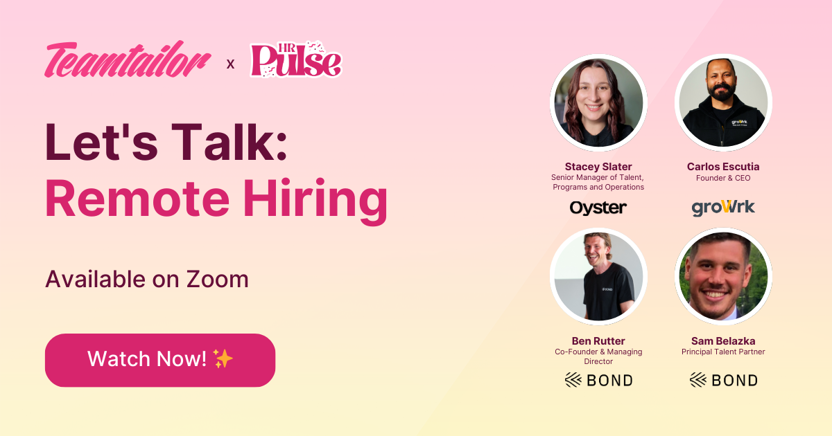 Stacey Slater, Senior Manager of Talent, Programs, and Operations at Oyster. Stacey has nearly a decade of experience in talent acquisition and she has successfully hired over 500 individuals across 70+ countries.