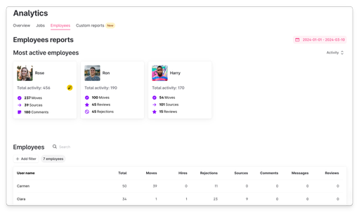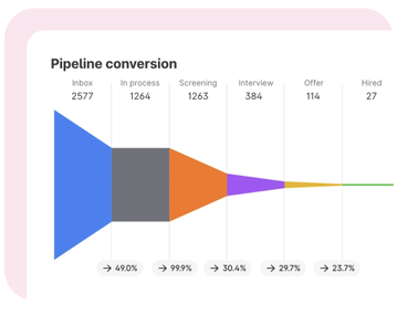 Our analytics features empower you to discover key insights like time-to-hire, candidate source, and funnel conversion rates that help you make smarter, data-driven decisions.