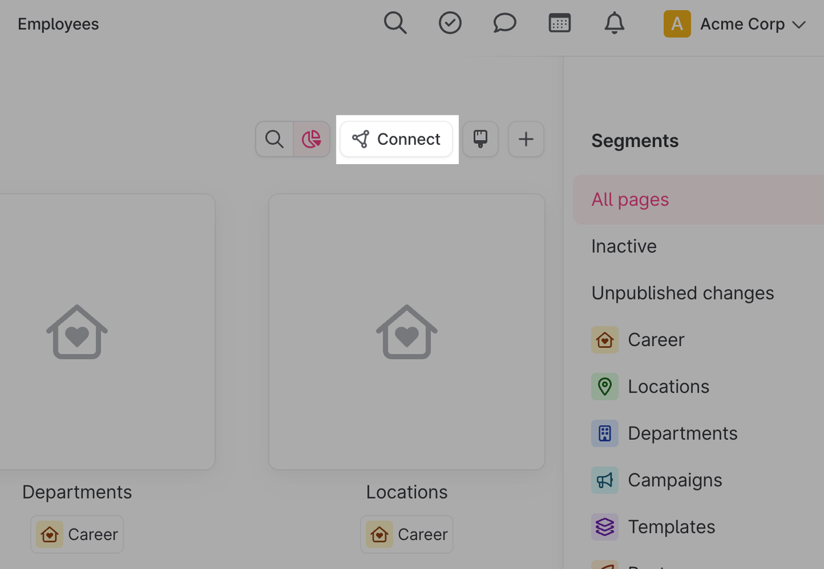 Connect is the smart feature that brings your candidates and company close. It makes it possible for candidates to show their interest in working with you, and for them to get to know you better. As they show which department and role they are interested in, you are proactively building your talent pool and making it easy to find the right profile at the right time. The candidate relationship automatically gets nurtured as they subscribe to getting alerted about new open jobs.