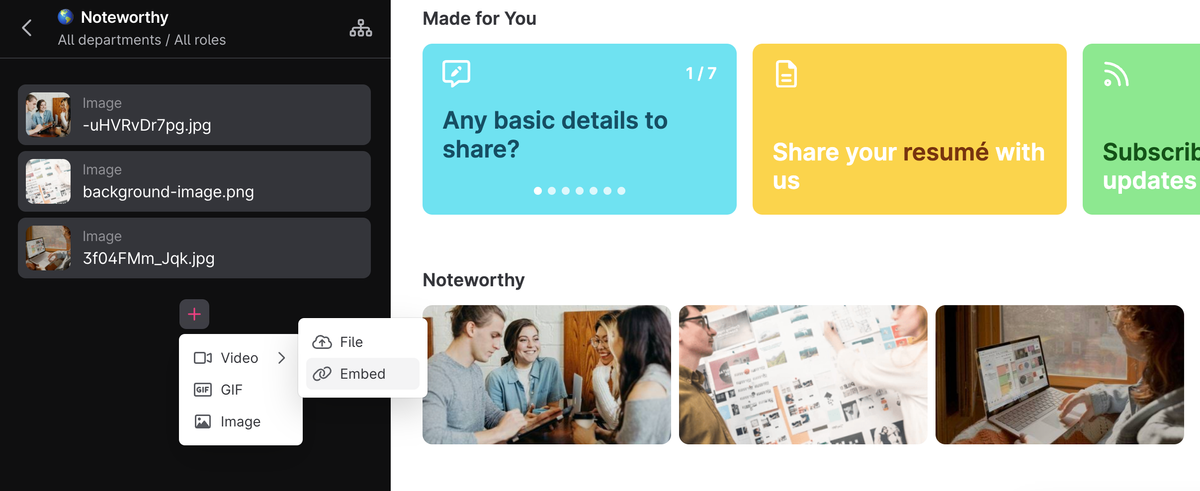 Get ready to bring your Connect pages to life! We’re introducing the ability to upload videos, GIFs, images, and posts directly to Connect. This update opens up new avenues for creativity and engagement with the companies connected candidates.