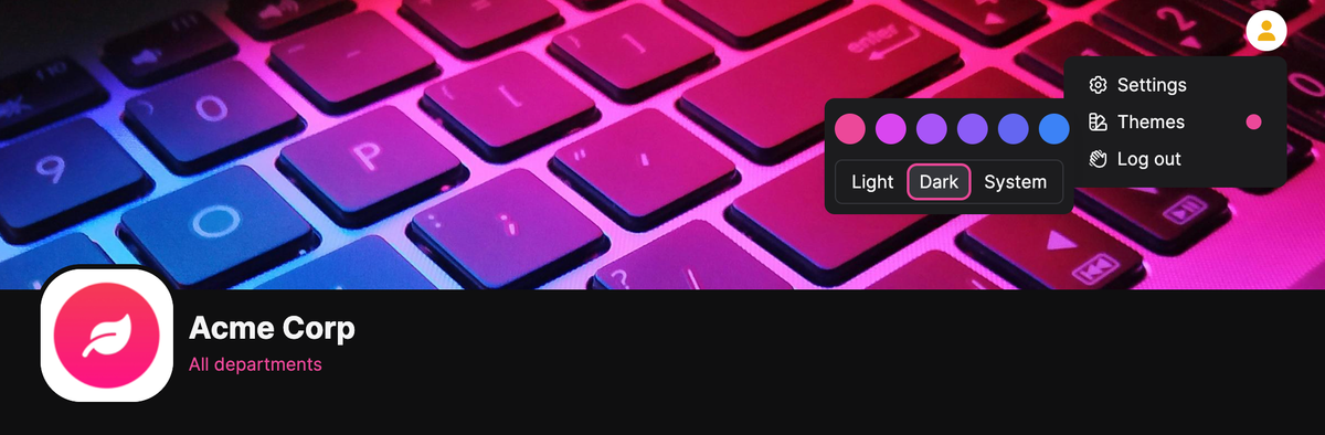 Candidates can now decide how they want to view your content, with a setting for light, dark or system mode. They can also change the theme and choose a different accent color.