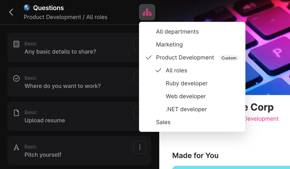 We’ve now released an update that makes Connect even more powerful, personal and informational. You can now add content and questions for specific departments, see the candidate experience, edit all settings in one place — and let’s not forget about the looks. Connect has a fresh design that makes your content stand out.