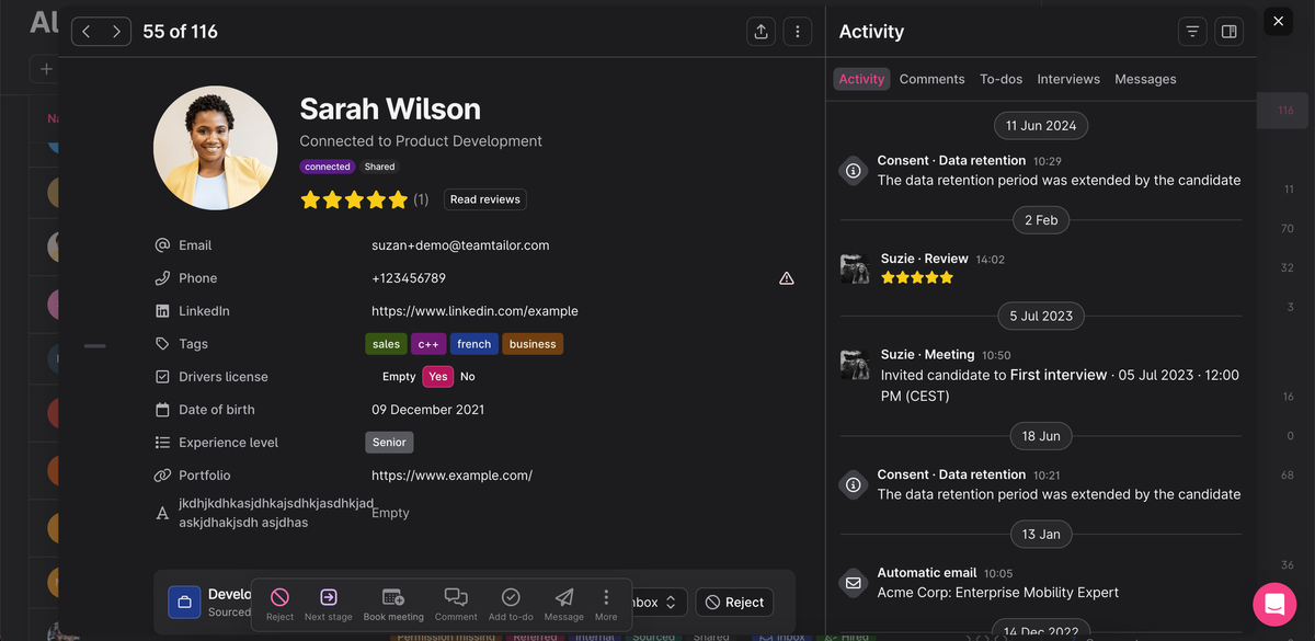 Teamtailor can now be used in dark mode, which can be easier on the eyes and improve focus.