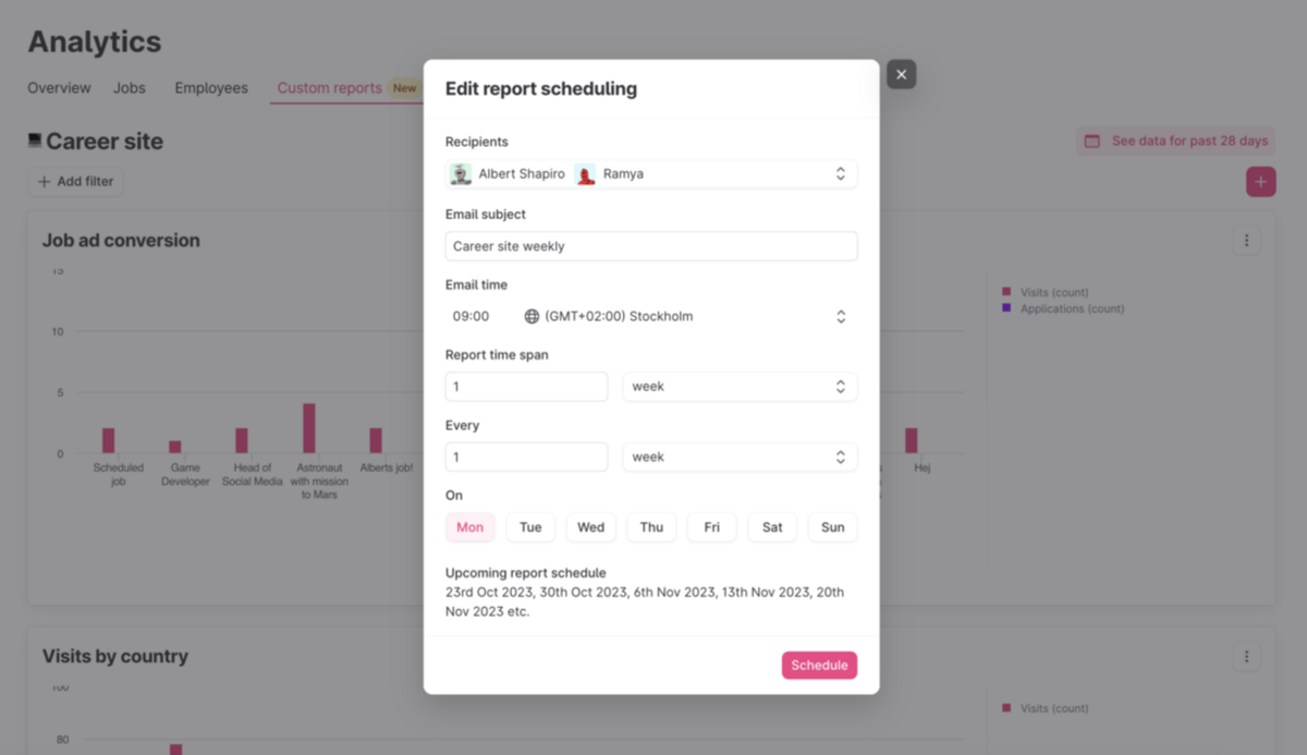 This scheduling feature automates the delivery of custom reports to your email, making sure you always have the right information at the right time. You can set the schedule that suits you — daily, weekly, monthly, or as needed, for any of the custom reports you have built. 🎉