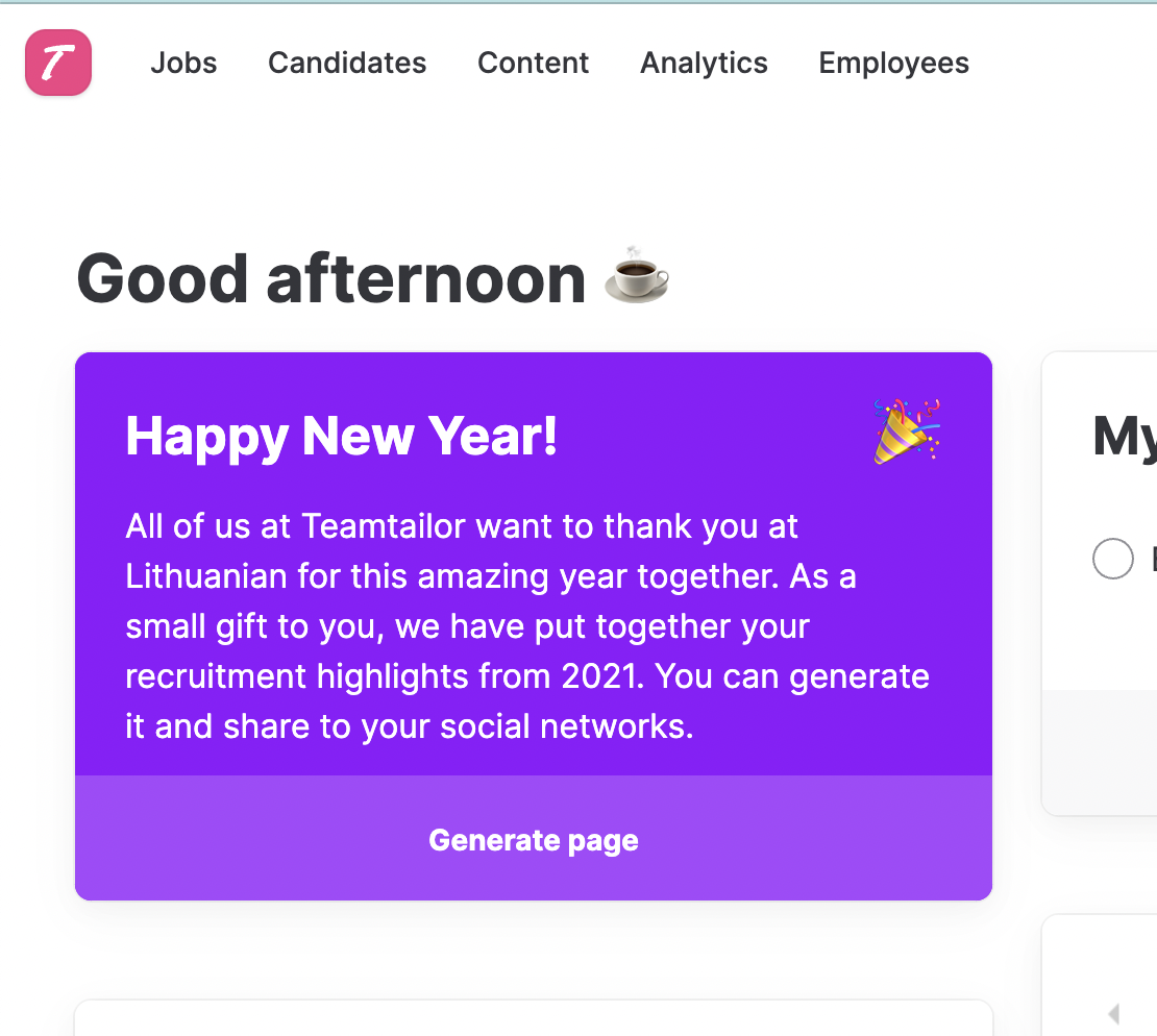 For us at Teamtailor, nothing is better than seeing your teams and companies grow. As a gift from us to you, to thank you for our year together — we want to highlight you and the work you've done. This is a chance for you to wrap up this year together with your team and see the results from your hard work during the year, and celebrate with them. Take some time to look at what you've accomplished and get some energy for 2022 🥳