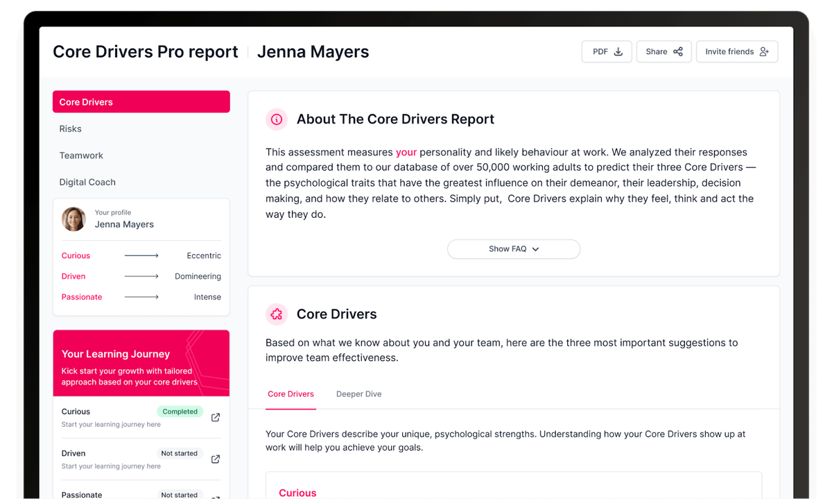Science-backed assessments measuring personality, soft skills, and behavioral drivers.