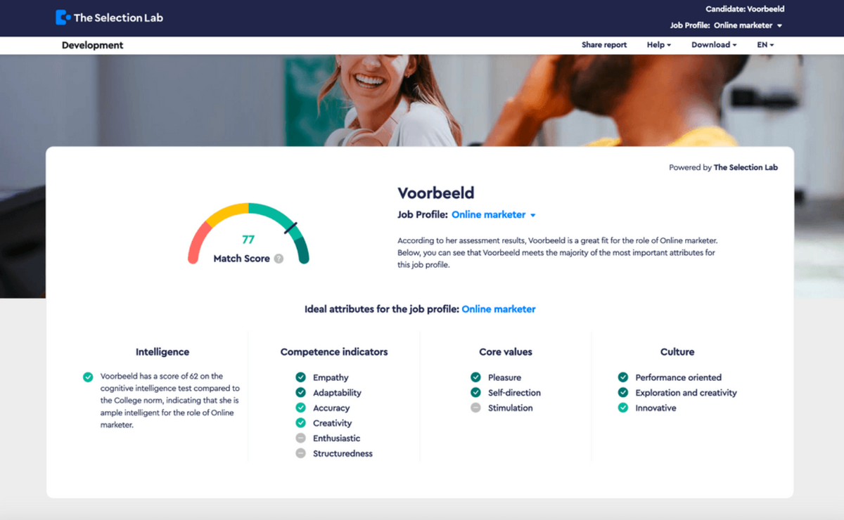 The seamless integration with Teamtailor enables you to harness the power of scientifically developed and validated assessments!
