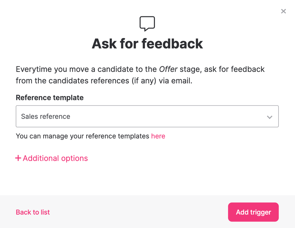 You can also automate the process by adding a trigger to a stage in the recruitment process. It doesn't get any easier than this!