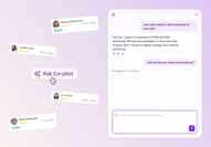 Use Co-pilot to ask questions about your candidates, search across all their information and get clear, AI-powered insights that help you save time.