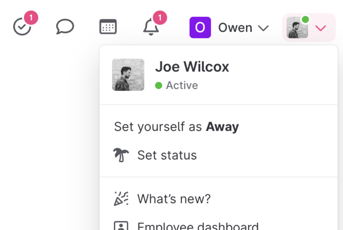 Our latest updates shows if you and your colleagues are online in Teamtailor with a green dot on the user profile picture. We have also added the possibility to add a user status to let your colleagues know that you are taking a break or have left for vacation.