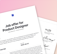 E-signing can be enabled for job offers created using our Job offer feature. This allows your candidates to add their signature directly on the job offer page. Everyone gets notified when they have something to sign, keeping the process smooth and on track.