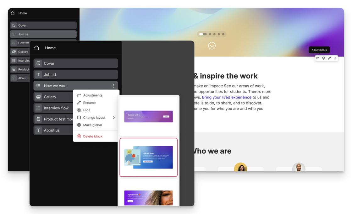 You now have the option of picking a layout for your cover blocks. We've kept the usual layout as the default one, but added two other options.