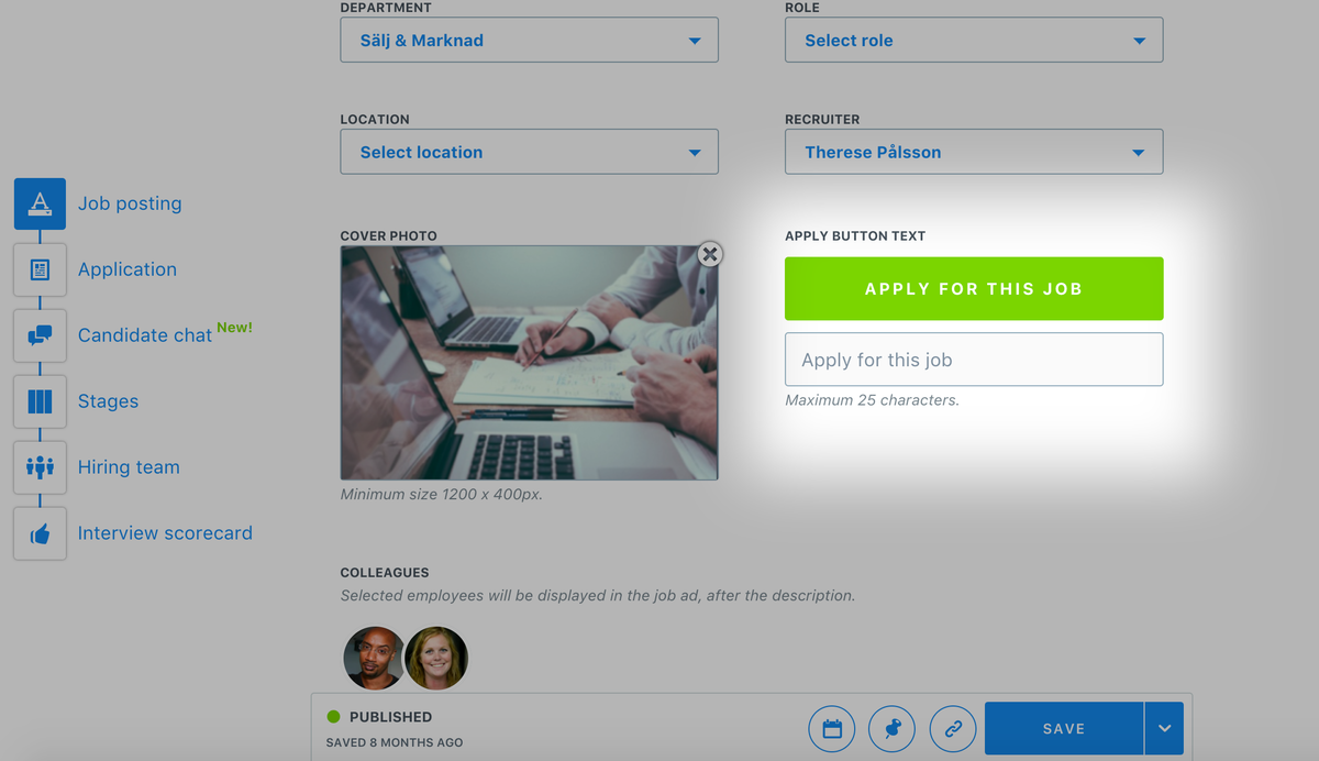 Now we're launching an update that makes it possible for you to decide what should be written on your CTA button. Choose how you want to communicate with your candidates and convert more visitors to applicants.