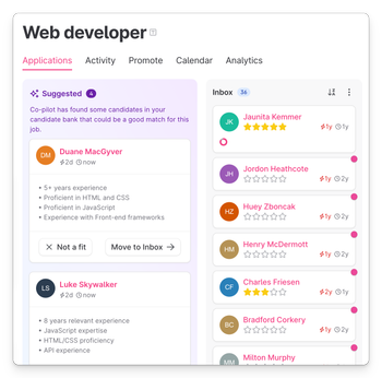 O nosso Co-piloto de IA pode sugerir candidatos com base nas suas competências, experiência e adequação à vaga — ajudando-te a encontrar a pessoa certa.