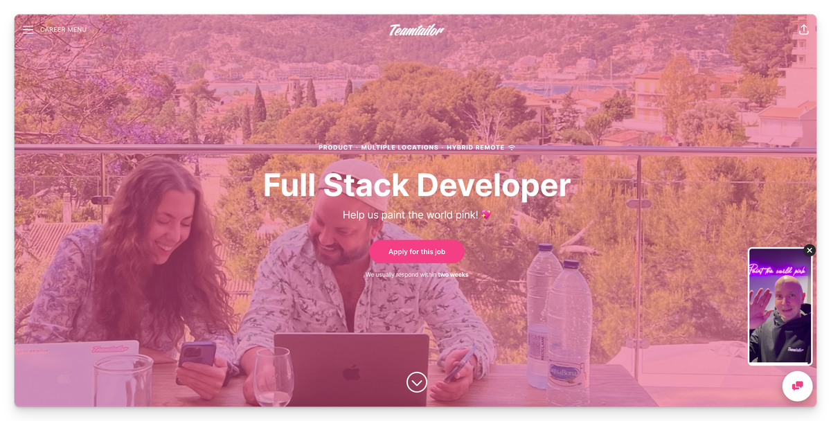 También podrías incluir fotos de los miembros de tu equipo y de las actividades en la oficina. Considera incluir testimonios de empleados actuales, e incluso un video de tu gerente de contratación para darle un toque lo más personal posible.