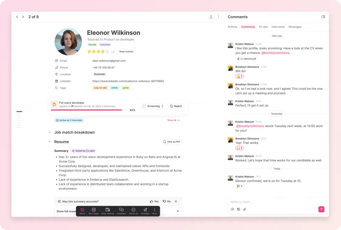 Teamtailor actúa como el punto central donde todo el proceso de selección cobra sentido.