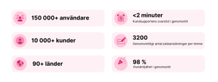 Sedan 2013 har vårat uppdrag varit att stötta våra kunder i att sticka ut och ligga steget före. Vi gör det möjligt för företag att marknadsföra sig som attraktiva arbetsgivare, samtidigt som vi ger varje kandidat den upplevelse de förtjänar.