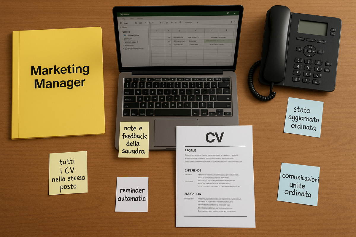 In pratica è un sistema di tracciamento dei candidati che sostituisce lo “schemino mentale” del recruiter e lo rende visibile, chiaro e condiviso.