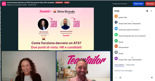 Nel nostro recente webinar — che ha visto come protagonisti Alessandro Di Gioia (Teamtailor) e Silvia Gironda, recruiter e consulente HR — abbiamo deciso di fare finalmente chiarezza.