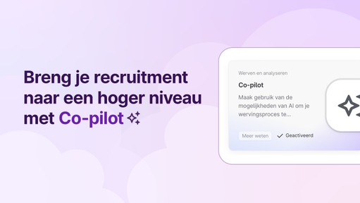 Zoals de naam al doet vermoeden, is Co-pilot je assistent bij het navigeren door je recruitmentproces. Jij bent nog steeds de gezagvoerder en hebt altijd de controle, maar je hebt een copiloot naast je wanneer je hulp nodig hebt.