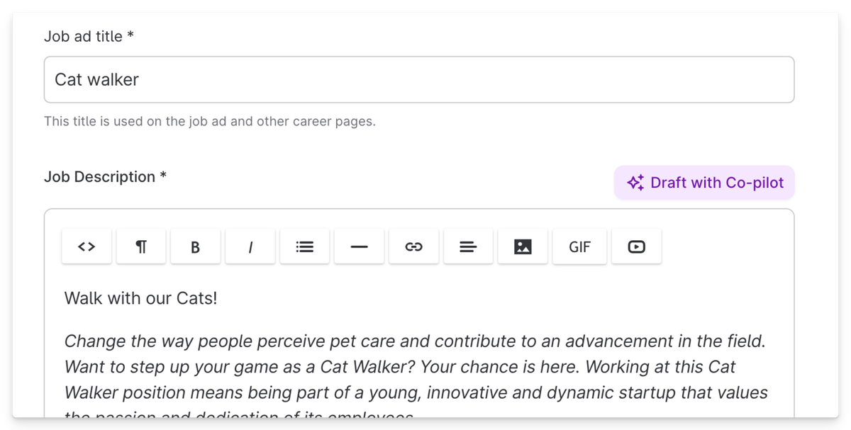Till sist kan Co-pilot hjälpa dig när du skriver blogginlägg till er karriärsida på Teamtailor eller er egen webbplats. När du skapar innehåll som är intressant för kandidaterna blir kandidatupplevelsen bättre på köpet.